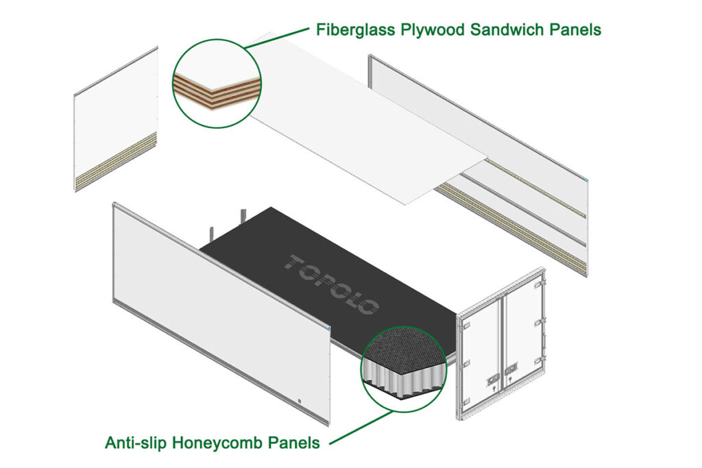 합판은 널리 사용 가능한 재생 가능한 소재이며 유리 섬유 합판 샌드위치 패널은 고성능, 내구성 및 비용 효율적인 건식 트럭 차체를 만들려는 제조업체에게 탁월한 선택입니다. 크기, 두께 및 단열 옵션은 다양한 운송 작업의 특정 요구 사항을 충족하도록 맞춤화할 수 있습니다. 유리 섬유 합판 샌드위치 패널은 합판의 강도와 내구성과 유리 섬유의 경량 및 부식 방지 특성을 결합하여 건식 화물 트럭 차체에 이상적인 솔루션을 제공합니다. 이 패널은 운송의 엄격한 요구 사항을 충족하도록 설계되어 트럭 차체의 전체 중량을 낮게 유지하면서 뛰어난 구조적 무결성을 제공합니다.