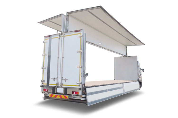 - 윙 오픈 트럭의 측면 패널은 날개처럼 열려 트럭 차체 한쪽 또는 양쪽에 넓고 막힘 없는 개방 공간을 제공합니다.