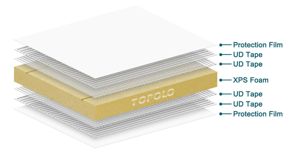 새로운 XPS 폼 코어 유리 섬유 단열 패널은 CFRT(연속 섬유 강화 열가소성 수지)를 표면으로 사용합니다. CFRT는 금속 재료보다 단열 효과가 우수하고 열경화성 유리 섬유 시트보다 내충격성이 우수합니다.