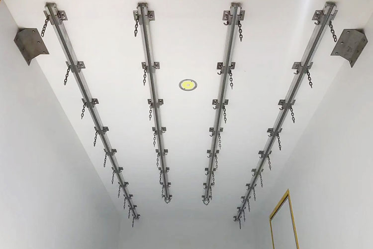 알루미늄 합금/스테인리스 스틸 슬라이드 레일은 냉장 트럭 상단에 설치되며 고기 후크는 다양한 화물 크기에 맞게 슬라이드 및 위치를 조정할 수 있습니다.