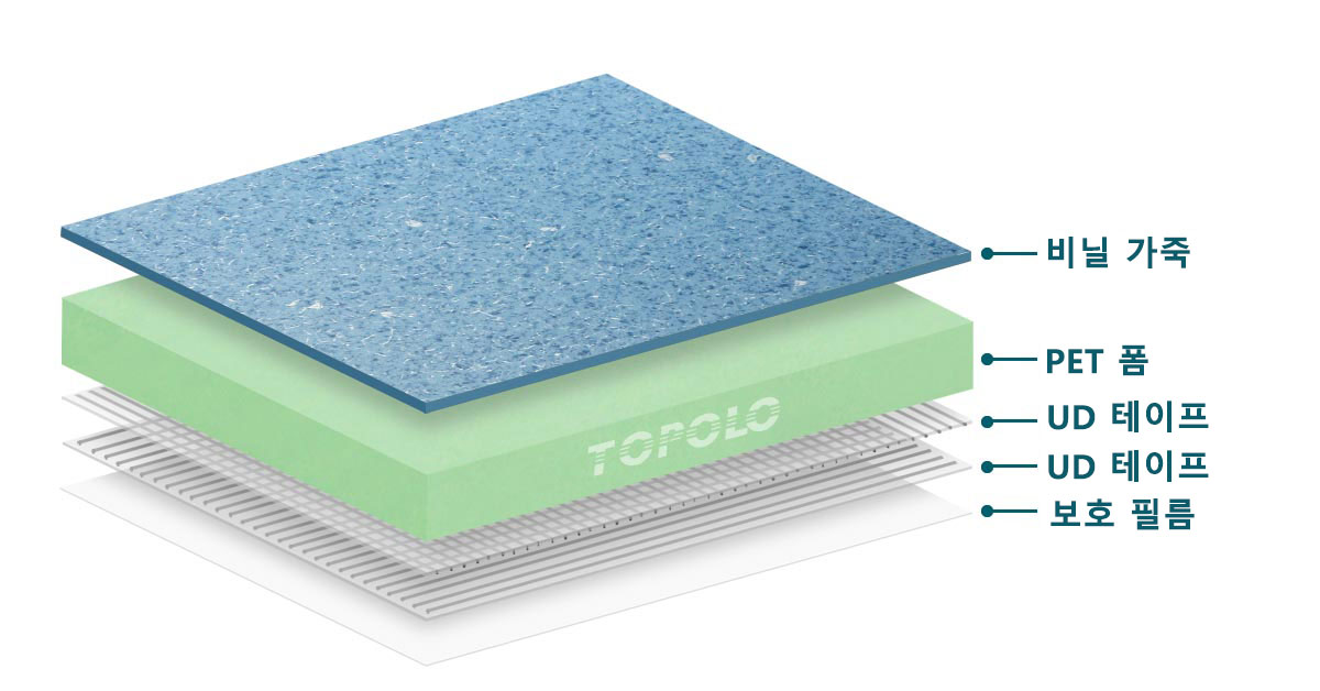 • 핵심 재질: PET(폴리에틸렌 테레프탈레이트) 폼. (밀도: 100kg/m³).