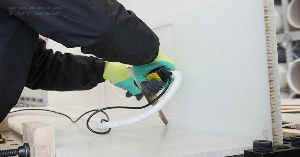 캐러밴의 디자인, 특히 차체의 전면과 후면에서는 일반적으로 유선형의 외관을 얻기 위해 다양한 곡선이 필요합니다. 열가소성 벌집 패널의 곡률을 달성하기 위해 패널의 한쪽에 일정한 깊이의 여러 홈을 절단할 수 있습니다. 이러한 홈의 깊이와 분포를 정밀하게 제어함으로써 벌집 구조의 무결성을 유지하면서 패널에 원하는 곡선 모양을 부여할 수 있습니다. 절단 및 굽힘 후 플라스틱 용접 기술을 사용하여 패널의 모양을 고정하여 원하는 곡선을 유지할 수 있습니다.