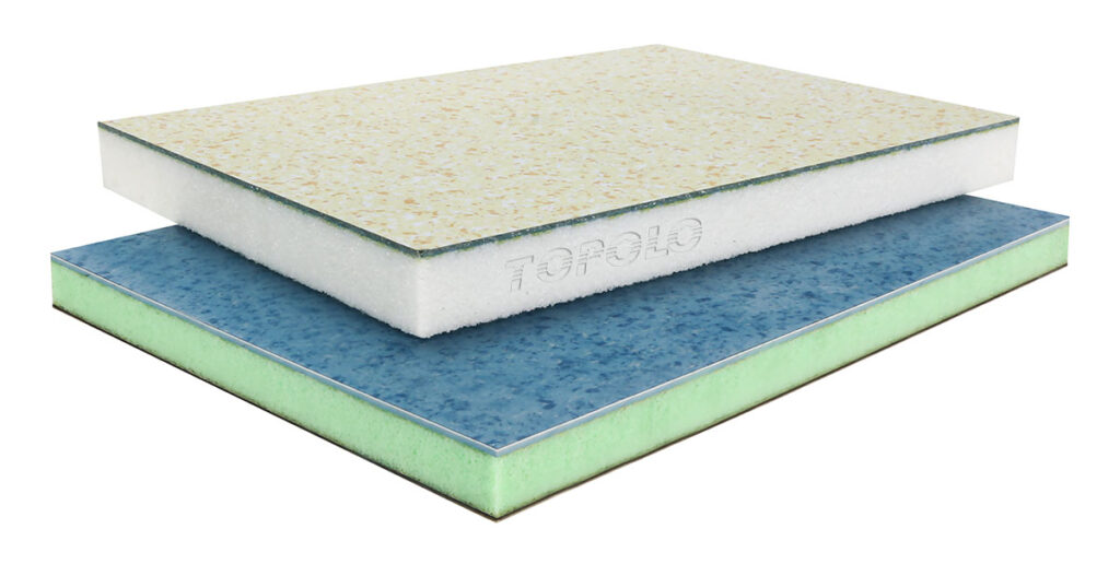 - PET 폼 코어: PET 폼 코어는 물을 흡수하지 않고 강도가 높은 폐폐 셀 구조입니다. 핵심 소재로서 바닥 구조에 탁월한 지지 강도를 제공하여 장기간 사용 시 안정성과 내구성을 보장합니다. 경량 특성은 또한 우수한 단열 및 내충격성을 유지하면서 전체 구조의 무게를 줄이는 데 도움이 됩니다.