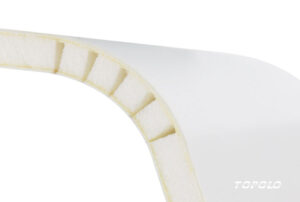 구부릴 수 있는 PET 폼 코어 샌드위치 패널은 저렴하고 실행 가능한 솔루션입니다. 샌드위치 패널의 한쪽에 특정 깊이의 홈을 절단하면 필요한 굽힘 범위를 달성할 수 있습니다. CFRT 소재의 우수한 강성으로 인해 패널은 구부린 후에도 여전히 매우 높은 강도를 갖습니다.
