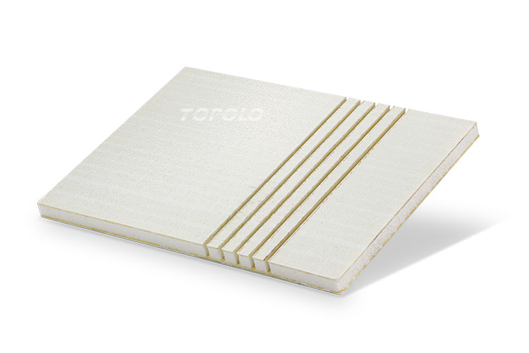 구부릴 수 있는 PET 폼 코어 샌드위치 패널은 저렴하고 실행 가능한 솔루션입니다. 샌드위치 패널의 한쪽에 특정 깊이의 홈을 절단하면 필요한 굽힘 범위를 달성할 수 있습니다. CFRT 소재의 우수한 강성으로 인해 패널은 구부린 후에도 여전히 매우 높은 강도를 갖습니다.