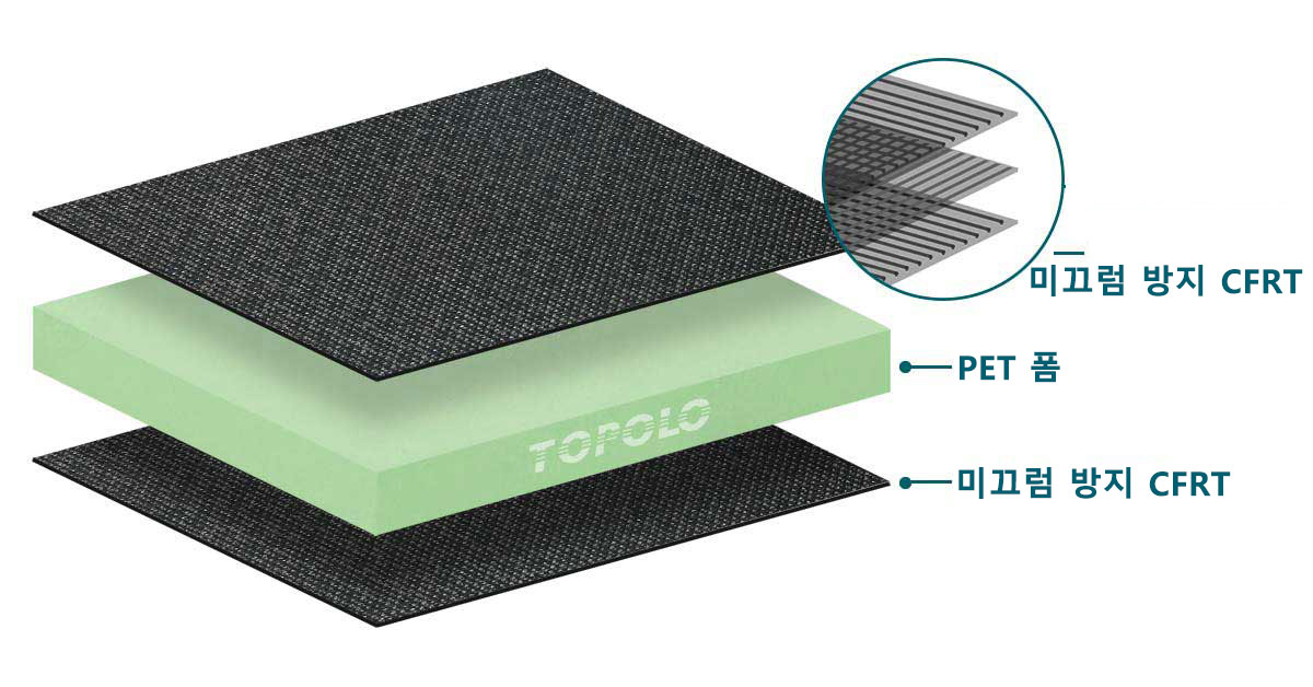 미끄럼 방지층은 조밀한 미끄럼 방지 질감을 지닌 CFRT(연속 섬유 강화 열가소성 수지) 복합 재료입니다.