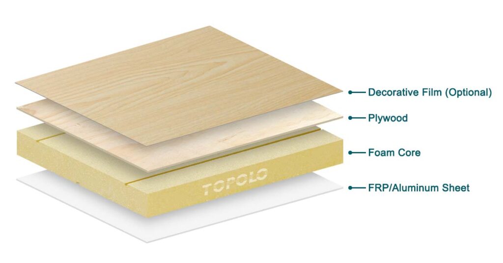 합판을 외장재로 사용할 때 가구 및 인테리어 디자인 산업에서 인기가 있습니다. 단단한 나무 보드의 대안으로 합판 외장판 폼 코어 패널은 경제적이고 환경 친화적이며 절단하기 쉽습니다. 우리는 양면 합판 외장판 및 단면 합판 외장판 폼 코어 샌드위치 패널을 생산합니다. 이러한 복합 패널은 특정 요구 사항을 충족하기 위해 크기, 표면 처리 및 폼 재료를 사용자 정의할 수 있습니다.