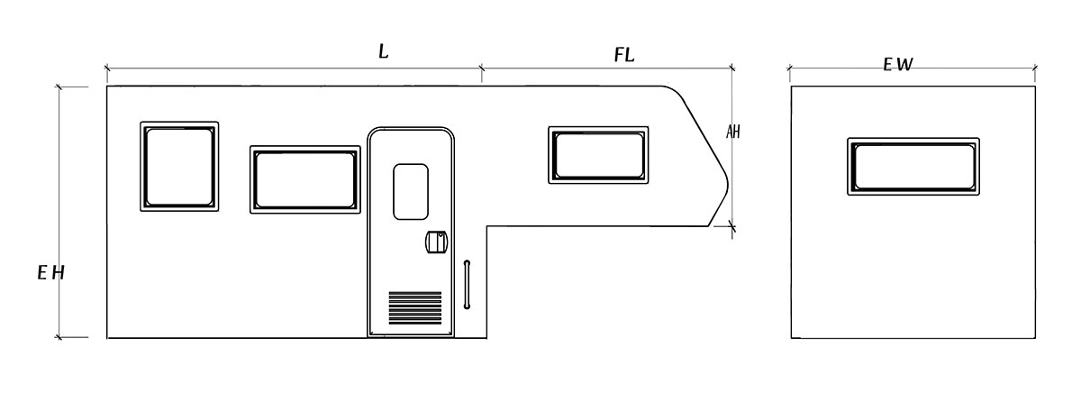 - 외부 크기(L x W x H): 6100(5100+1000 골방) x 2250 x 2400mm.