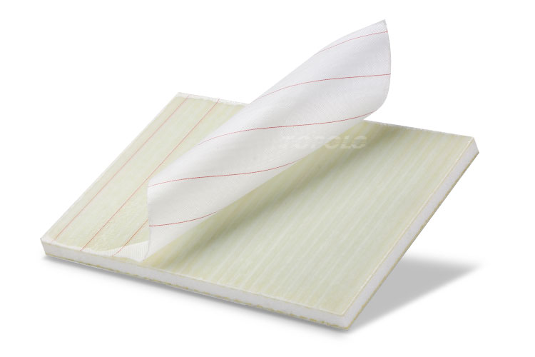 CFRT 스킨 PET 폼 샌드위치 패널의 제조 공정은 열가소성 복합 라미네이션 공정을 위해 접착제 결합을 피합니다. CFRT 시트를 용융 상태로 가열함으로써 PET 폼의 더 큰 기공은 가열된 CFRT가 폼 깊숙이 침투할 수 있도록 합니다. 냉각 및 경화 후 둘은 단단히 결합되어 놀랍도록 강한 구조를 만듭니다. 핫멜트 접착 필름을 접착제로 첨가하면 복합 효과가 더욱 향상됩니다. 접착제 접착 PET 샌드위치 패널에 비해 이 제품은 내열성과 내수성이 향상되는 동시에 제조 비용 효율성도 높습니다.