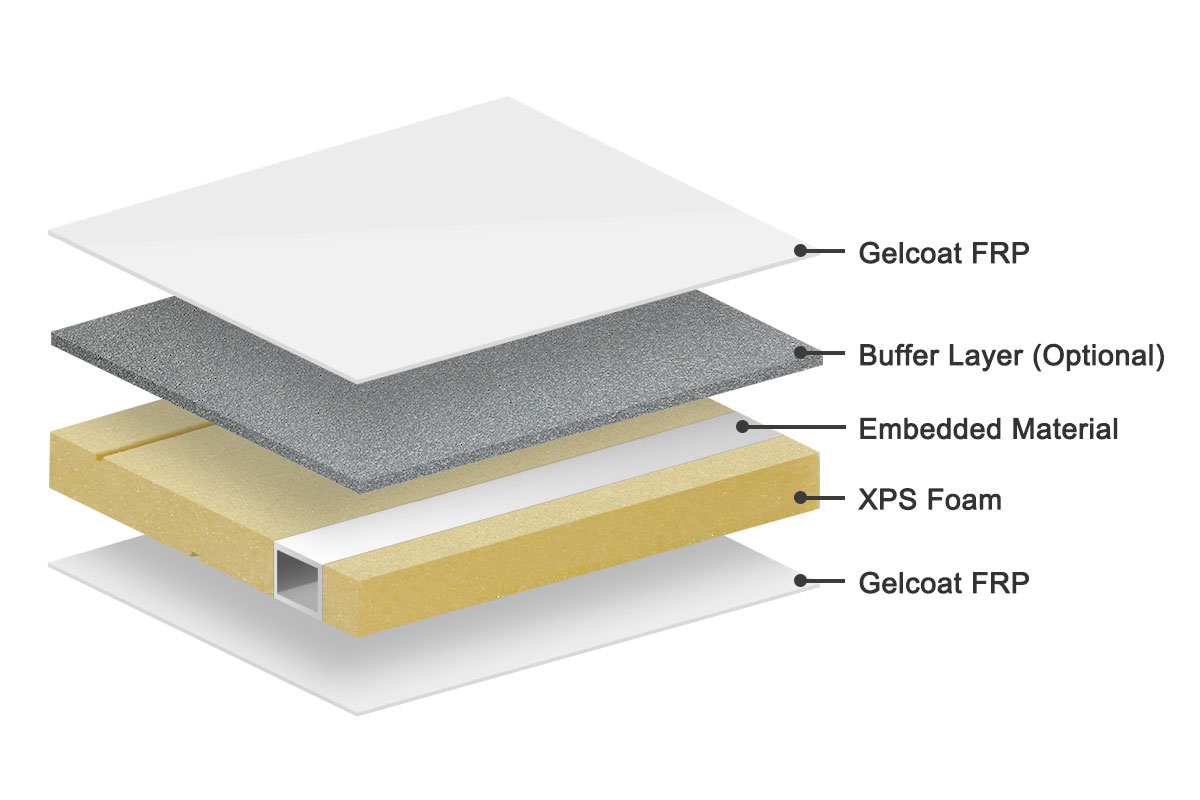 - 벽 재질 : 50mm FRP 직면 XPS 폼 샌드위치 패널.