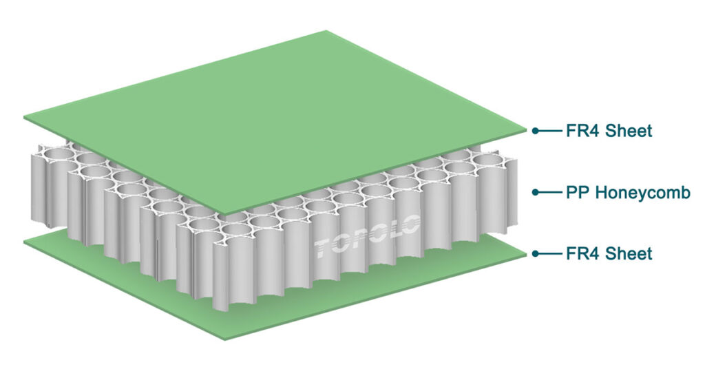 FR4 허니컴 패널은 FR4(에폭시 유리 섬유 라미네이트)와 폴리프로필렌(PP)의 장점을 결합하여 가볍고 강하며 내구성이 뛰어난 소재를 만듭니다.