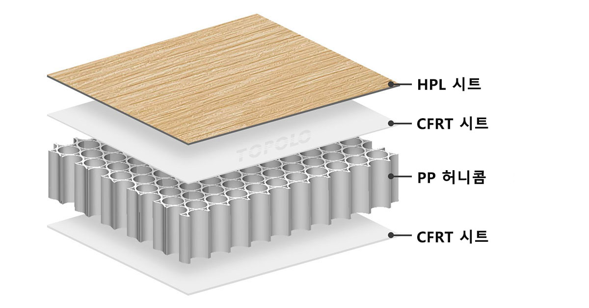 • 탑 스킨: 1.0mm 나뭇결 HDL + 0.7mm CFRT.