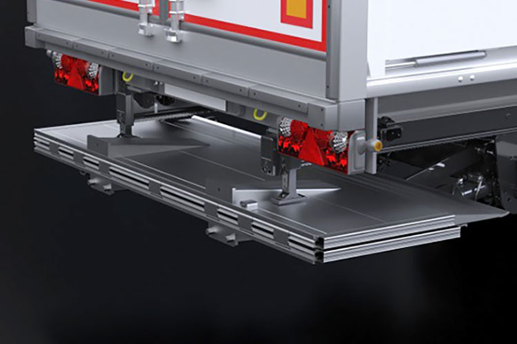 - 테일 리프트는 안정성 향상을 위해 유압 잠금 장치가 있는 유압 모터로 구동되는 4기통 캔틸레버 구조를 특징으로 합니다. 플랫폼 패널은 수동으로 접을 수 있으며 작동을 돕기 위해 회전 스프링이 장착되어 있습니다. 충격 방지 롤러는 충격을 제한하기 위해 플랫폼 패널에 장착되며, 추가 보호를 위해 트랙 가장자리에 버퍼가 제공됩니다.